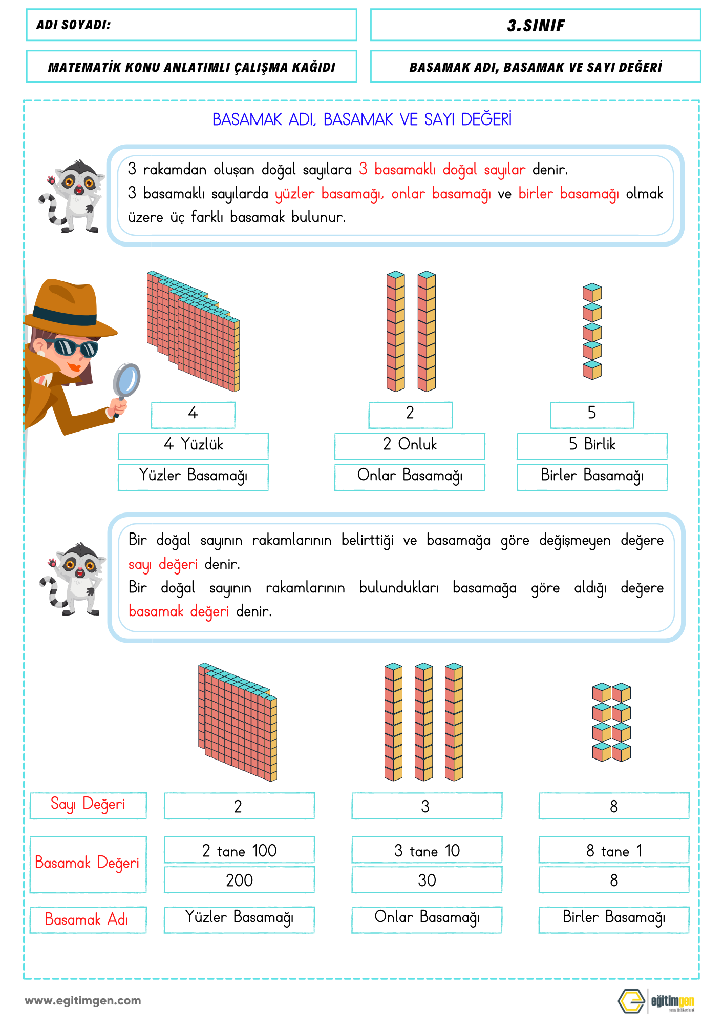 3.Sınıf Basamak Adı-Basamak ve Sayı Değeri Konu Anlatımlı Çalışma Kağıdı