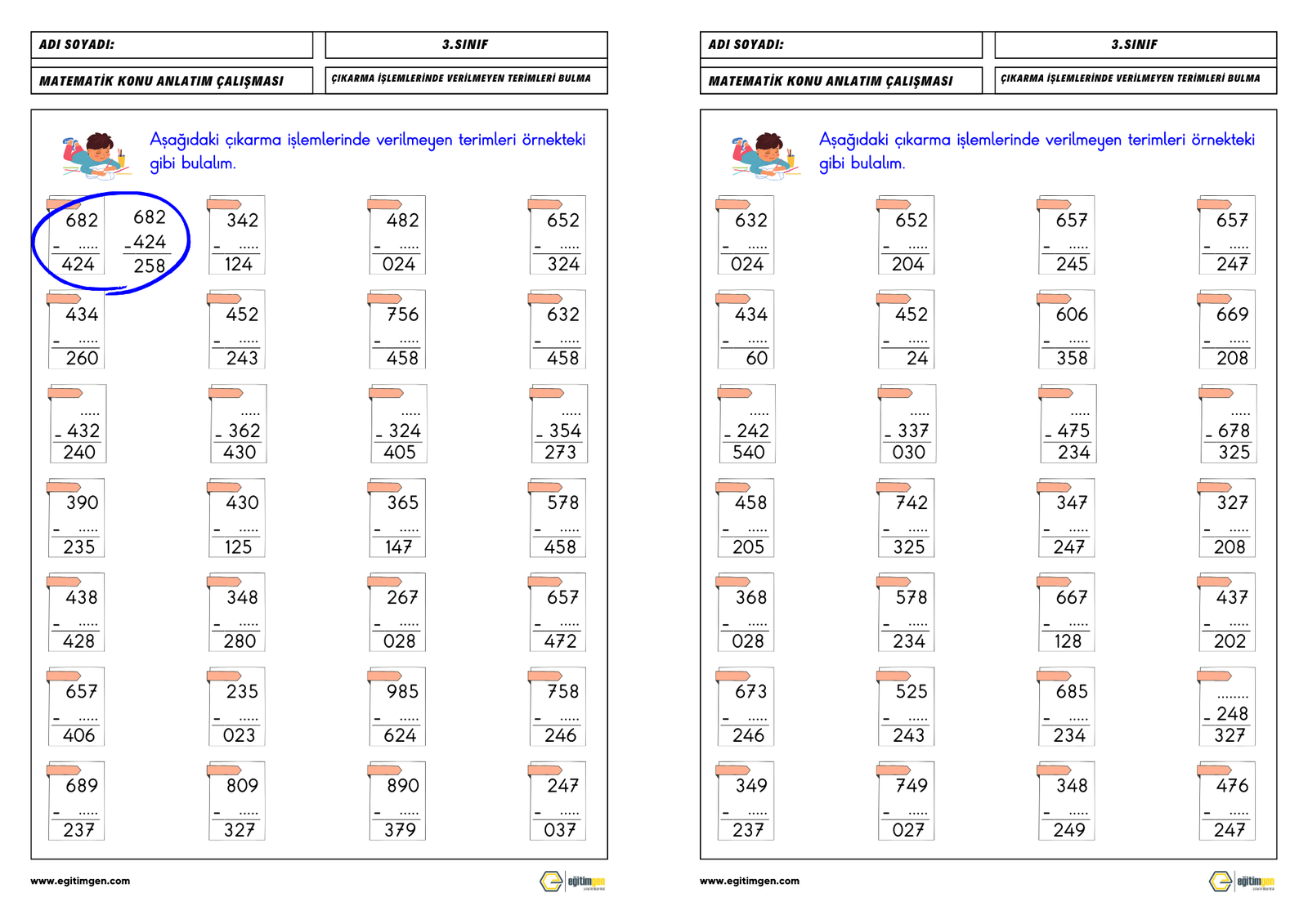 M3-10-6 Çıkarma İşleminde Verilmeyen Terimleri Bulma